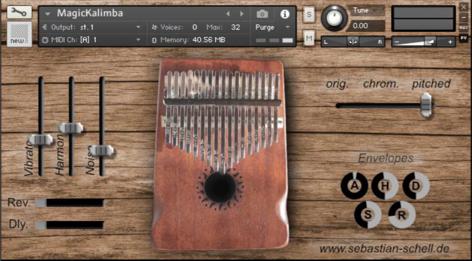 While looking for new instruments to sample I stumbled upon this Kalimba. I think there is a plethora of sampled Kalimbas out there, but I wanted to do one on my own and work with the recorded samples. This Kalimba is tuned in C major (diatonic), but next to an "original" tuning I also created a chromatic and an extended version, that includes three octaves. For the recording I used an AKG C214.